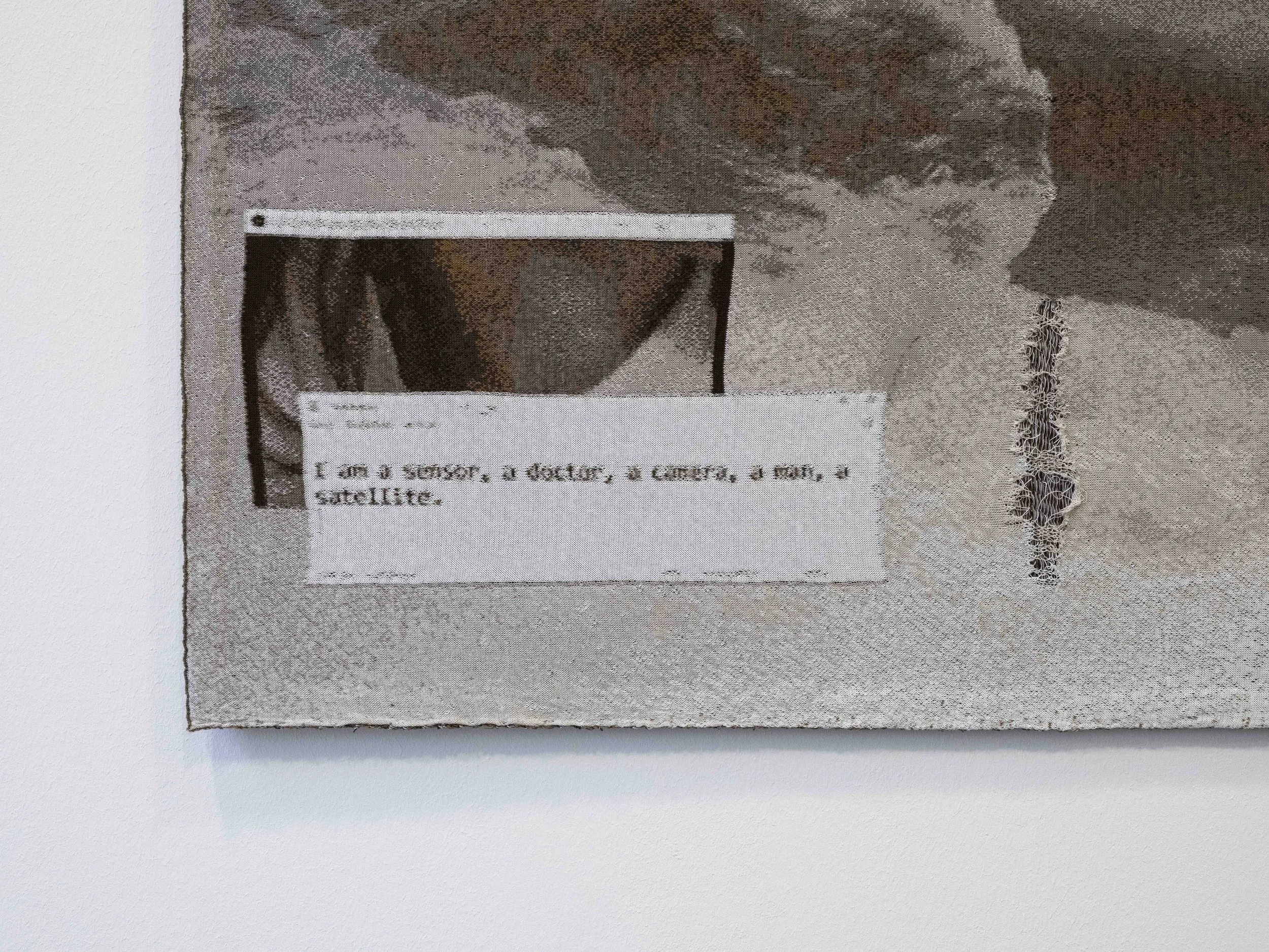 We walk through the streets of the cities, through the paths of the fields. We observe all the places we see. We observe the surface of the earth. Simply for its protection, for its safety. If we want, we can see only the heat in the landscape, or only the water, or only the salt. We extract the data the way we think is important. We filter the information the way we find it beautiful, until we find it truly beautiful. We drill with our metallic eyes into the subtleties of this thin, crispy crust. Then we feed everything we know and see into the weaving machine. The weaving machine produces the yarn, and the yarn shows us everything: where it is salty, where it is dry, where it is hot, where it is high. That is one way the landscape image can look, but it can also look completely different if we focus on another aspect. Every pixel becomes a stitch. The loom principle became the computer principle; now we are reversing it again. Every stitch represents a value, a datum that we measured sometime, somewhere. From the server the yarn comes back—multicolored, never-ending—into their world, which lies before us.