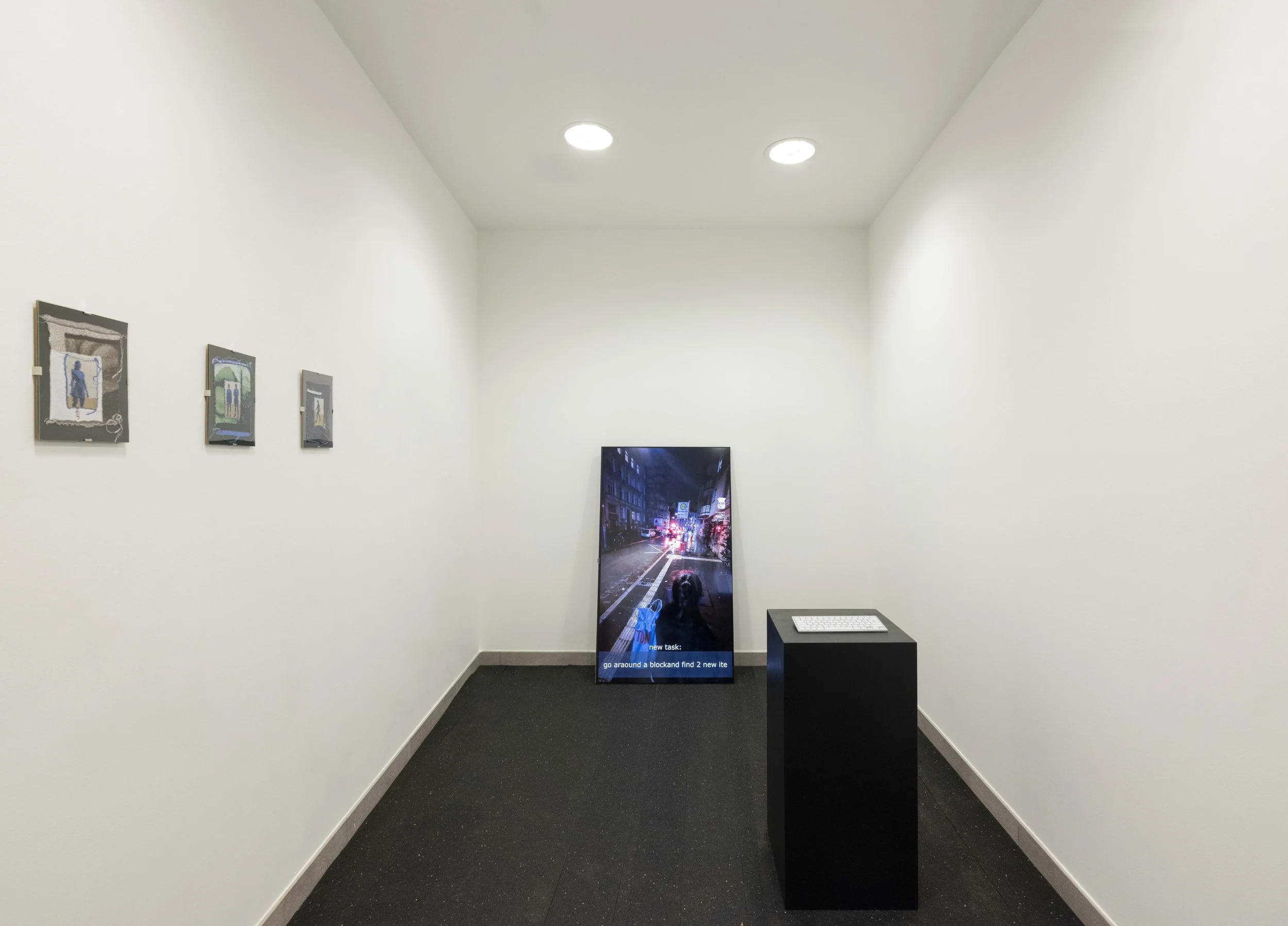We move on. The service is running. Lili is one of us now. She has turned herself into a bot and has become part of the city infrastructure of the bots who offer their services. We are an entire army out here. As an interface between the layers of reality, we offer ourselves: we receive assignments from the digispace and carry them out in the material world. Under precarious, isolated, dangerous working conditions, we maintain the city’s consumption structure. Even if one tries to suppress this notion of “we,” we are a we. But Lili is only pretending; Lili only acts as if she were a bot. She will wash the blue paint off again and then become human again, while we others are in here forever—unless someone switches us off..